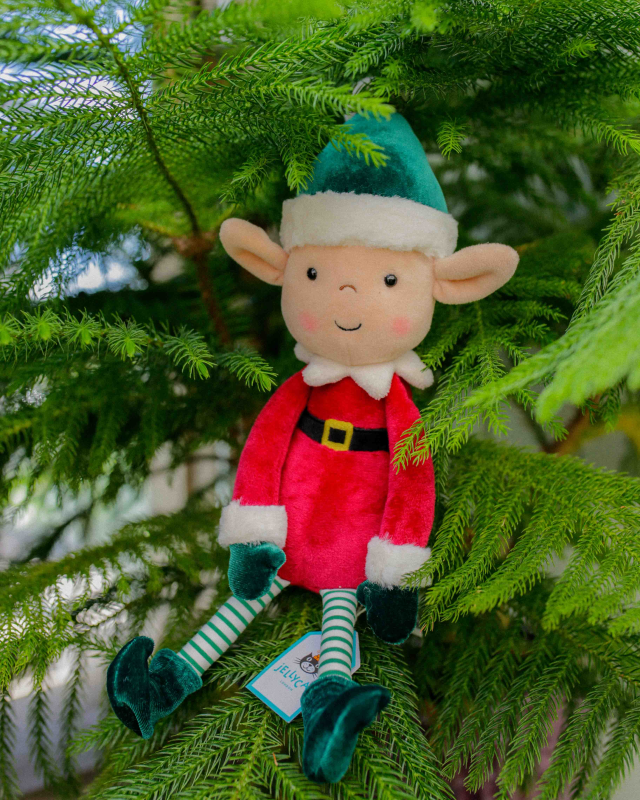 Everyone needs a helper, not just Santa! Eldo Elf is a charming friend with rosy cheeks and fold-detail ears. This dandy pixie wears a mulberry suit with a cream star collar and gold-buckled belt, paired with curly velvet boots and matching ivy green bobble hat. With an affable smile, Eldo is here to boost the Christmas cheer!