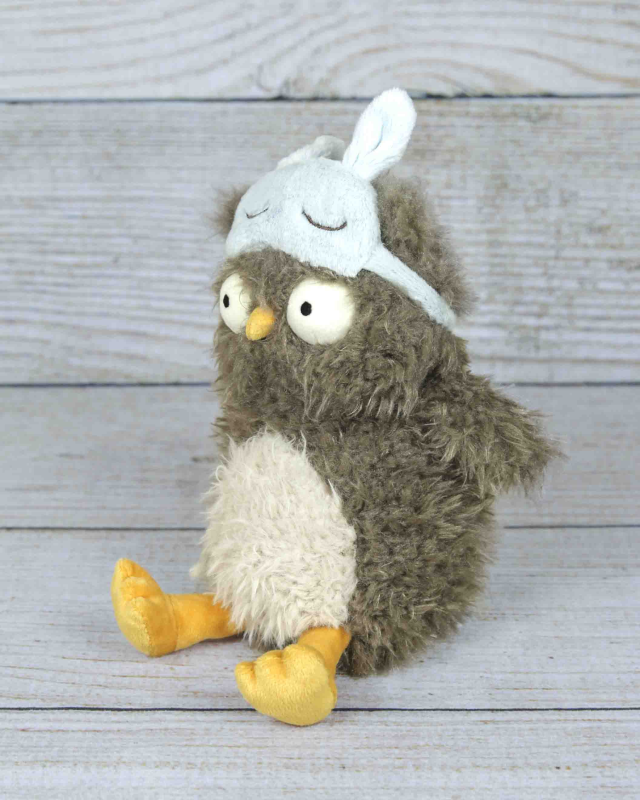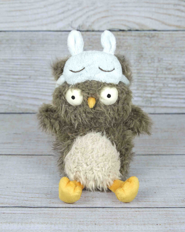 Audrey Hootsoftly loves to sleep in, which is why she's wearing her blue suedette mask! It's even got embroidered lashes! This mocha owl has bed-head fur and wide-awake bobble eyes! With sunny feet, tiny wings and a oatmeal patch on her tummy, Audrey's an absolute hoot.