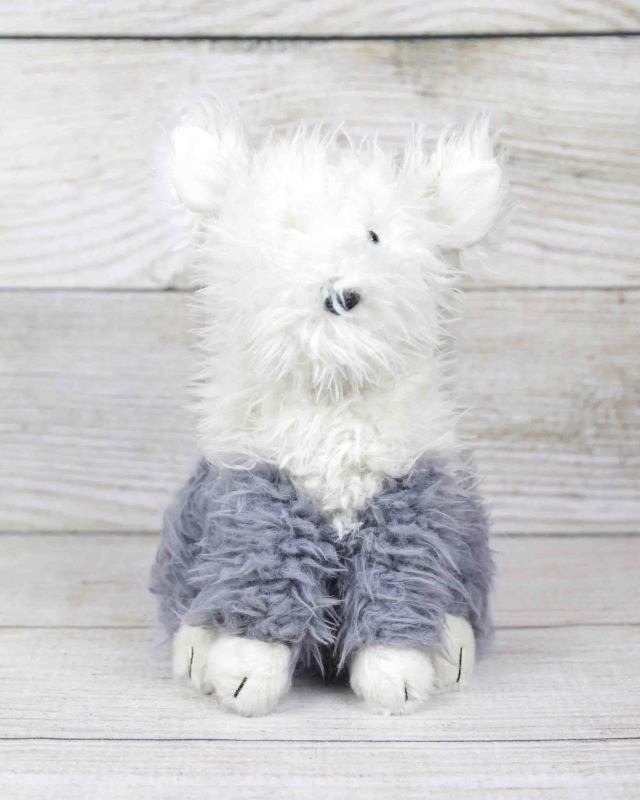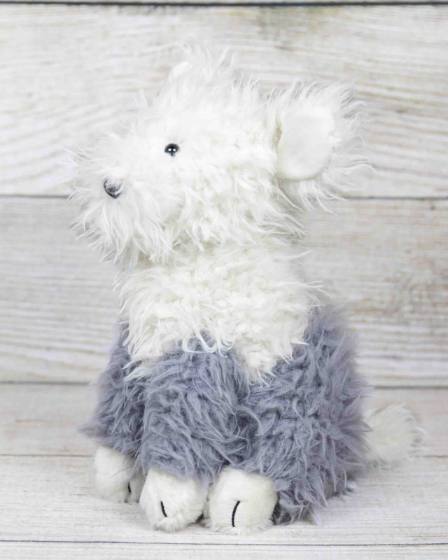 Ewert Sheepdog is here to play, round up joy, and share cuddles! In long, textured cream and grey fur with bright eyes and long tail, Ewert has stitched paw detail and a big, boopable black suedette nose. The perfect gift for dog lovers of all ages!
