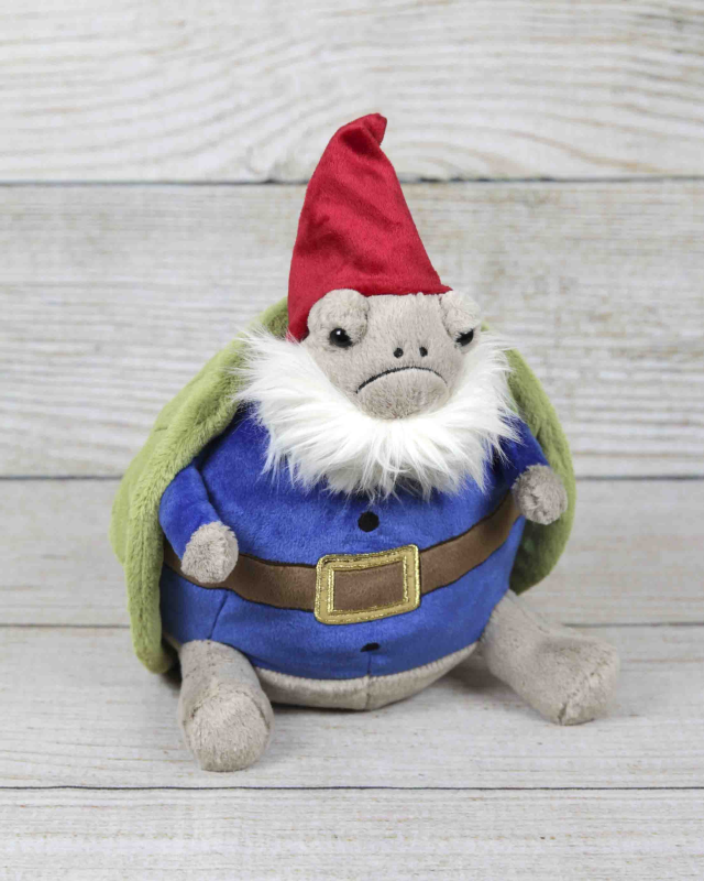 Timmy Turtle is a garden gem. Our favorite grumpy turtle wears a deep blue tunic and brown belt tucked into his green shell. With a red hat and fluffy cream beard, Timmy is the grumpiest gnome you’ll ever meet!