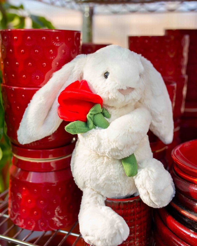 Calm, un-rushable Cream Bunny with Rose takes the time to notice the beauty all around her. She pauses to admire the stack of freshly folded napkins at the tea shop, to appreciate the scent of autumn drifting through the park, or to remark on how beautifully Silver Bunny’s ears catch the morning light. Every detail feels like a poem to her.