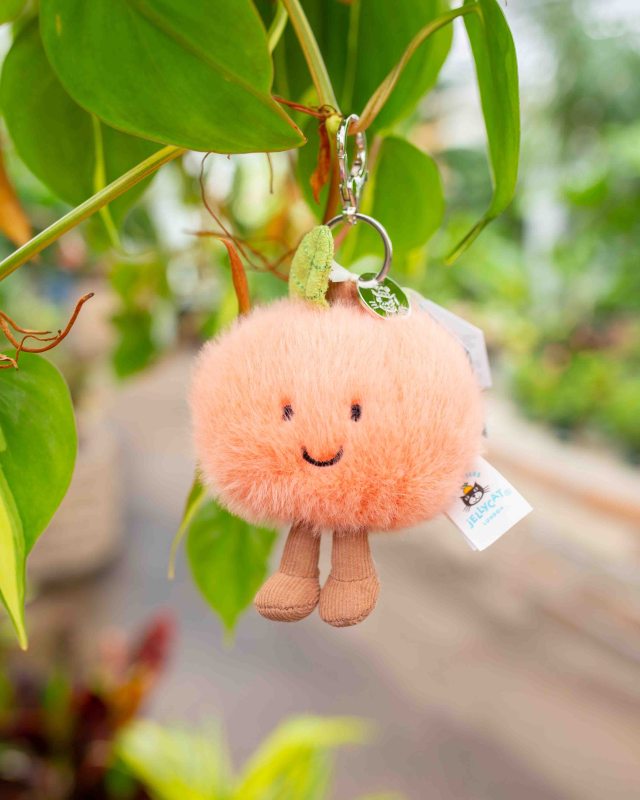 With its velvety blush fur and silver clasp, the Amuseables Peach Bag Charm is the perfect way to keep your favorite Jellycat charm close. Modeled after the ever-popular Amuseables Peach, simply clip onto your bag, keys, or travel tote – and take some of Peach’s own sunniness with you on the move.