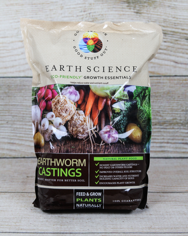 Earth Science earthworm castings are made with 100% earthworm manure and never any low-cost fillers. Professional growers have relied on earthworm castings for years to improve the soil, as they are an excellent source of organic matter. Regular use improves overall soil structure, increases water and nutrient holding capacity of soils, and encourages plant growth. They are an excellent supplement for plants of any kind.