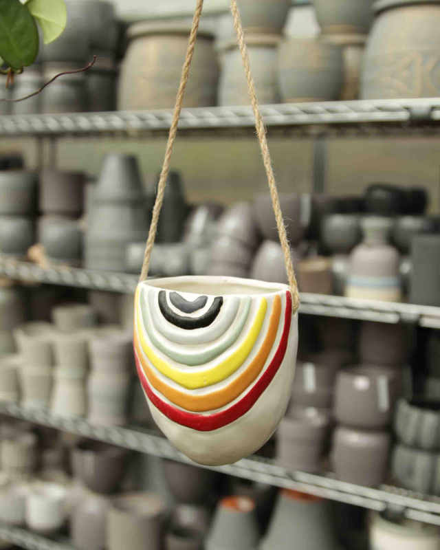 Bring a splash of whimsical color and organic charm to your indoor garden with the Kalalou Hanging Ceramic Rainbow Planter. This eye-catching piece isn't just a home for your greenery; it’s a sculptural accent that adds a playful, bohemian vibe to any room.