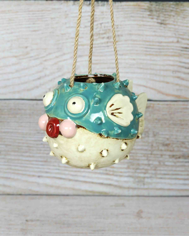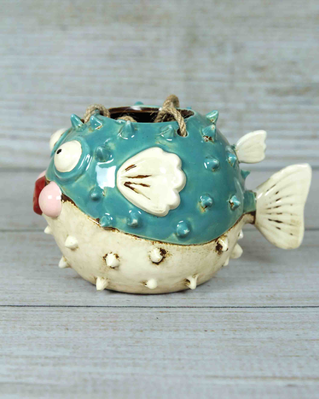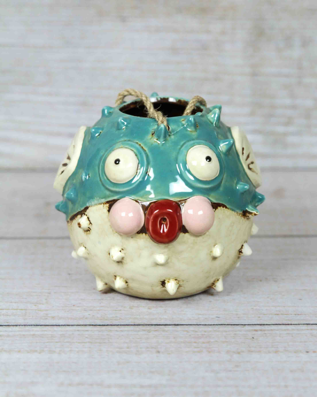 Add a playful touch to your home with the Blowfish Planter. This charming piece features a whimsical blowfish design, crafted from high-quality ceramic. Its vibrant colors and textured surface create a unique and eye-catching addition to any room. Perfect for showcasing your favorite plants or simply as a decorative statement!
