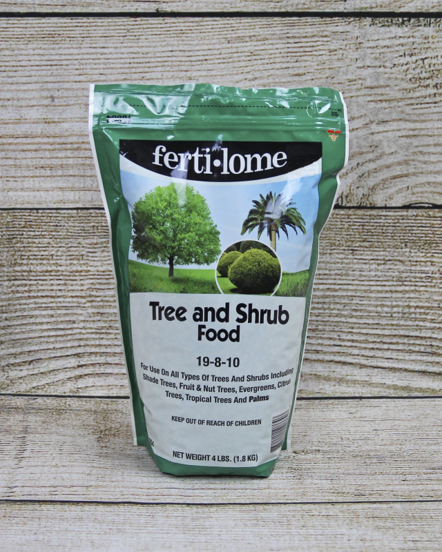 Fertilome Tree & Shrub Food is a scientifically formulated fertilizer that nourishes a wide variety of trees and shrubs, including shade trees, nut trees, evergreens, citrus trees, and flowering trees. The fertilizer contains ingredients that help move the nutrients directly to the plant's feeder roots.