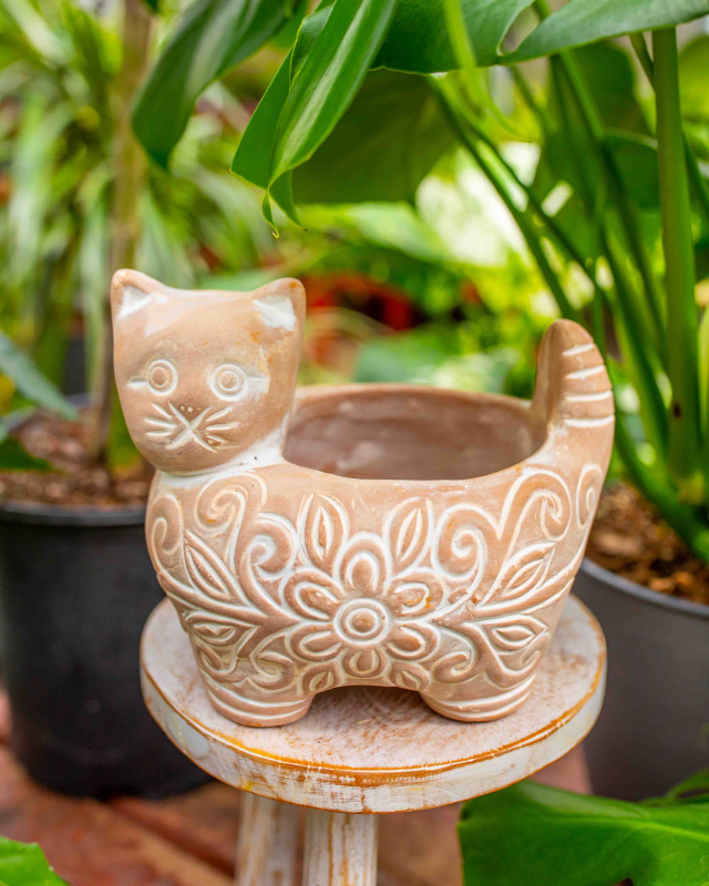 The perfect pot for catnip! The Garden Kitty Planter is a charming, handcrafted tribute to everyone’s favorite garden companion. Hand-sculpted from natural terracotta and featuring a whitewashed finish that settles into the hand-carved details. The size makes it great for plants like cat grass, string of pearls, or small herbs and succulents.