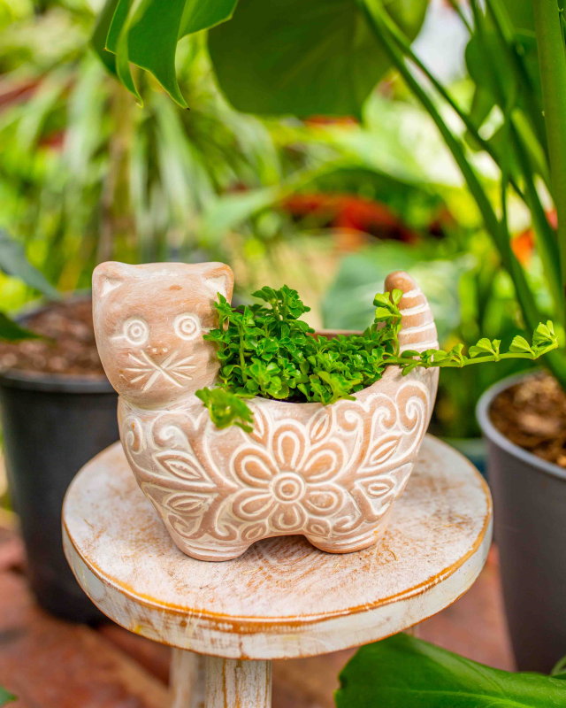 The perfect pot for catnip! The Garden Kitty Planter is a charming, handcrafted tribute to everyone’s favorite garden companion. Hand-sculpted from natural terracotta and featuring a whitewashed finish that settles into the hand-carved details. The small size makes it great for plants like cat grass, string of pearls, or small herbs and succulents.
