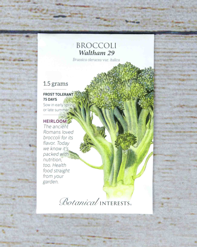 Broccoli has a long culinary history going back to the Romans. The florets, leaves, and stems are packed with vitamin C and provide calcium, potassium, and iron. The 4"-6", blue-green heads are delicious raw or cooked. 'Waltham 29' grows prolific side shoots and is specially adapted for cold tolerance. Freezes well. Kids will delight in the "little trees" on their plate.