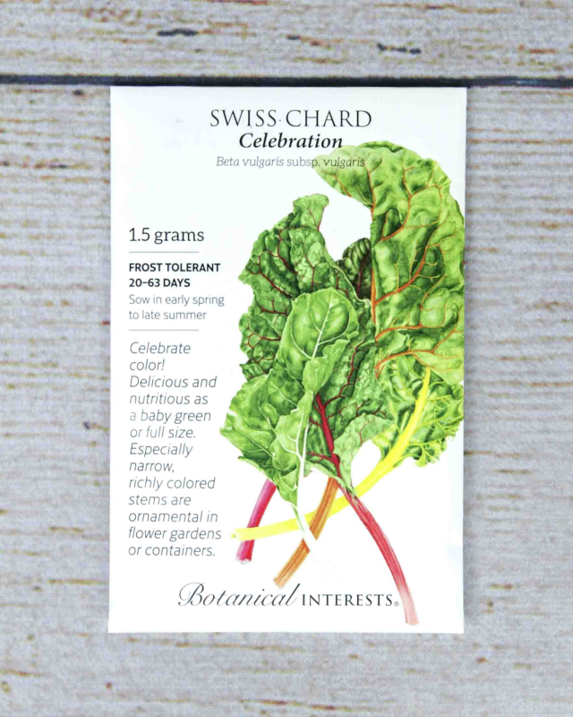 The bright colors of 'Celebration' are cause for, well, a celebration! Red, magenta, orange, pink, yellow, and white stems support glossy, dark green leaves—a beautiful ornamental for the flower garden or large containers! New selection with deeper colors and less white in the mix, but with flavors as bright as ever. Open-pollinated variety with uniform leaves and stems, a great specialty chard for the home gardener. Harvest all summer or grow for baby greens!