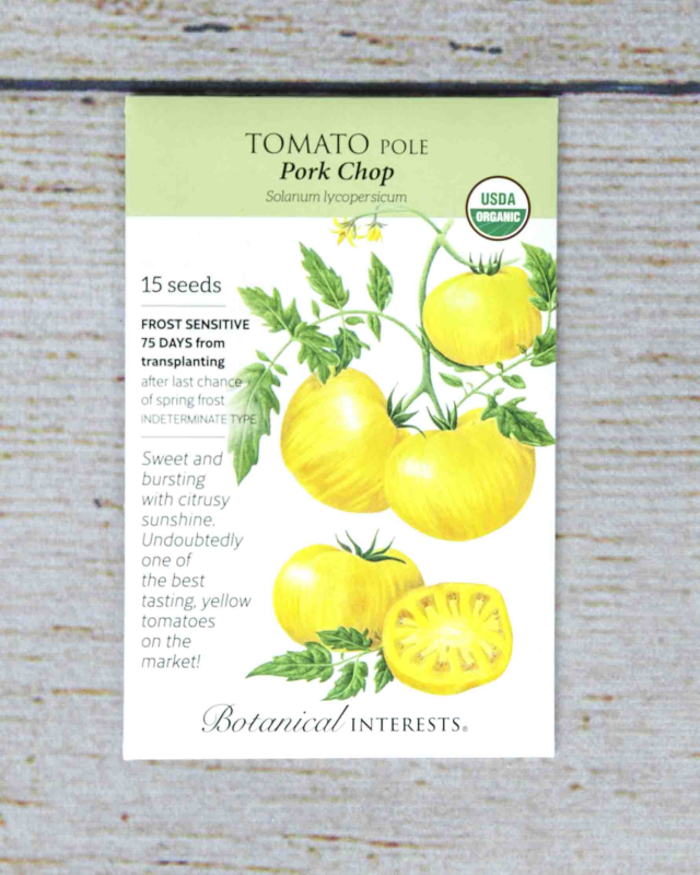 Did you know that most yellow tomatoes are actually orange? Not this one! "Pork Chop" is a true yellow tomato with a delightfully sweet flavor sprinkled with notes of citrus. Bred by Wild Boar Farms, these slightly flattened beefsteaks weigh 8-12 oz. "Pork Chop" will start off yellow with green stripes that eventually turn a deep golden color. An absolute must grow.