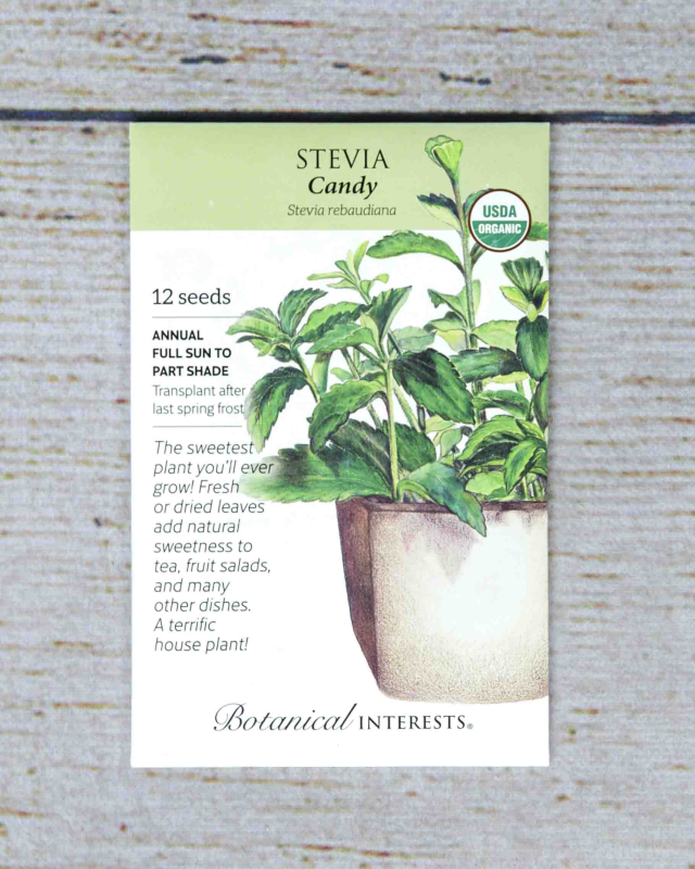 Now you can grow your own calorie-free, carbohydrate-free, low-glycemic sweetener at home! Stevia, also called sweetleaf, is up to 300 times sweeter than sugar, so a little goes a long way. Some say the leaves have a slight, pleasant, anise aftertaste. The bushy, 18"-30" tall plants can be grown in 10"-12" diameter containers. Leaves are sweetest just before the plant flowers in late summer to fall. Grown as an annual, although perennial in USDA zones 10 and warmer.