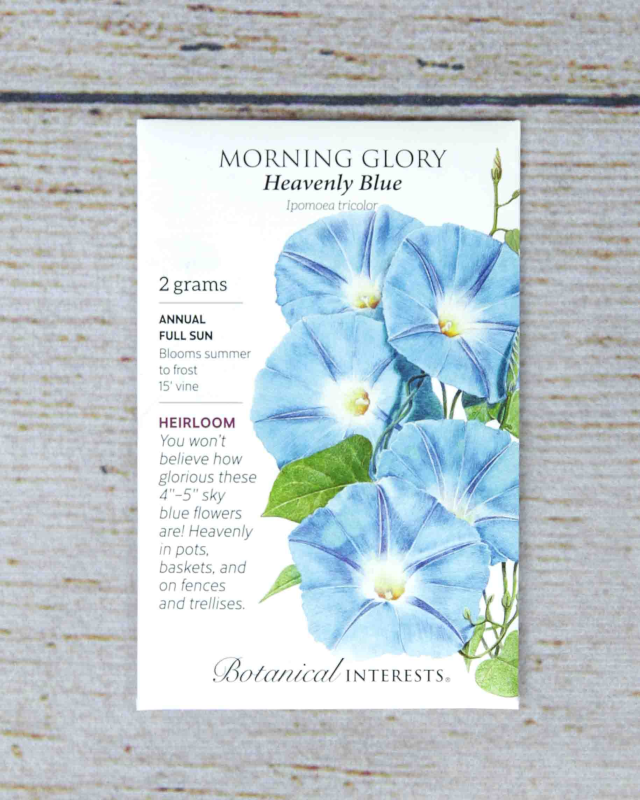 This showy climber will dazzle all who are lucky enough to behold it! Morning glory is so named because the flowers open in the cool of morning, then close when it gets too hot. On cloudy days and in the fall, the blossoms stay open all day. Caution: Parts of this plant are toxic if ingested.