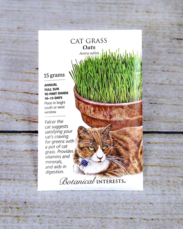 Falcor the cat suggests satisfying your cat's craving for greens with a pot of cat grass. Do you want to keep your cats from eating potentially harmful houseplants, or coarse, outdoor grass that sticks to the back of their tongues and might contain pesticides? Because it's grown indoors, fibrous cat grass can be served fresh, year-round to assist your cat with digestion, and may help prevent furballs. Grass is ready for cats to eat when it is 2"-4" high. Place near their water or food bowl for only a few minutes so that they don't binge. Feed for a few minutes at a time on a regular basis to get your kitty's tummy used to it, allowing absorption of all the nutrients. Great for dogs, too!