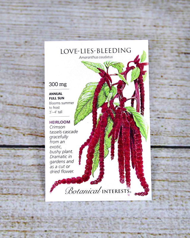 The dramatic, crimson tassels of love-lies-bleeding make it a unique plant, with a long history in colonial American and Victorian English gardens. Place upfront as a focal point, or in the back of a border. Tassels can reach 18 inches, last for many weeks, and are excellent for fresh or dried flower arrangements. Also called tassel flower.