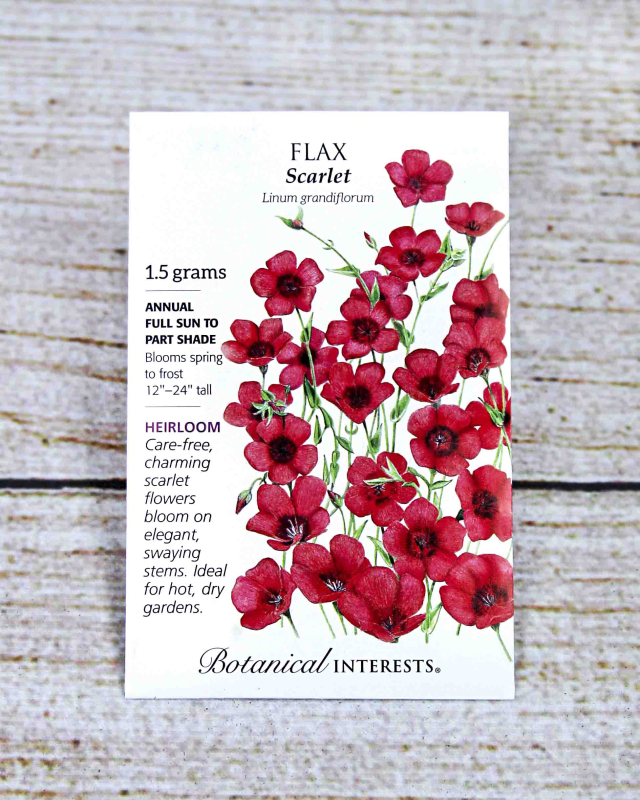 Scarlet flax is a show-off in the garden. Each brilliant red flower lasts just a day, but in profusion, they set the garden ablaze with intense color. Easy-to-grow, low-maintenance plants attract pollinators and tolerate hot and dry conditions. Allow plants to go to seed, and you'll be rewarded with months and years of color. This is an ornamental flax and not intended for consumption.