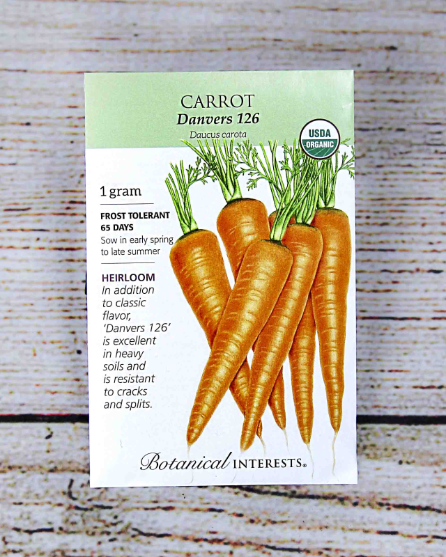 Growers in Danvers, Massachusetts during the late-19th century were searching for a carrot with improved color, yield, and uniformity. After many variations, the 'Danvers 126' carrot was born! It grows particularly well interplanted with onions and in heavy soils due to its high fiber content. Heat-tolerant with high yields, it also has a noticeably sweeter flavor and stores exceptionally well if cleaned after harvest. Resistant to cracks and splits.