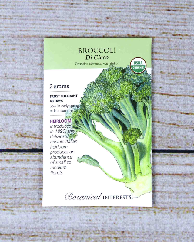 An Italian classic, 'Di Cicco' is a superb variety, producing numerous, small to medium-sized heads well into the summer for more delicious broccoli more often! We recommend harvesting the main head when it is 3" in diameter; this will encourage side shoots. 'Di Cicco' is a good freezer variety; leaves are also edible, cooked like chard. Seeds are excellent for sprouting!