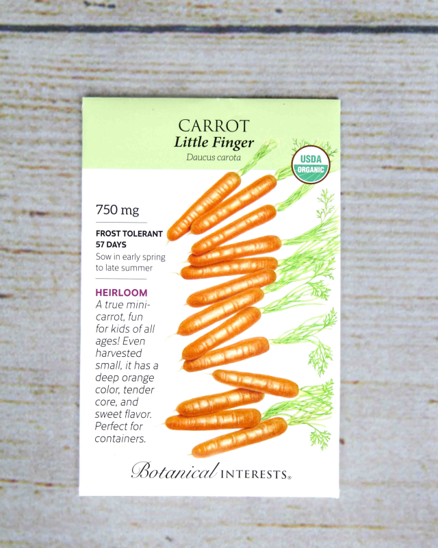 Did you know that grocery store baby carrots are actually cut from regular sized carrots? Once you try the sweet flavor and crisp bite of this 3" long, true baby carrot, you will never look back! Though it tastes great fresh from the garden, 'Little Finger' was developed in France for pickling and canning whole. This packet sows up to 32 feet.