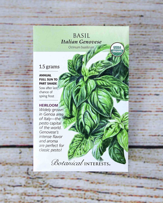 There is nothing like the aroma of basil in the summer! Widely grown in the Genoa area of Italy–the pesto capital of the world. Genovese has the traditional fragrance and flavor, making it excellent for almost any basil dish, especially pesto. One of the most useful herbs, it also has beautiful, edible flowers. In a warm, sunny window, basil can grow indoors in the winter! A good container variety.