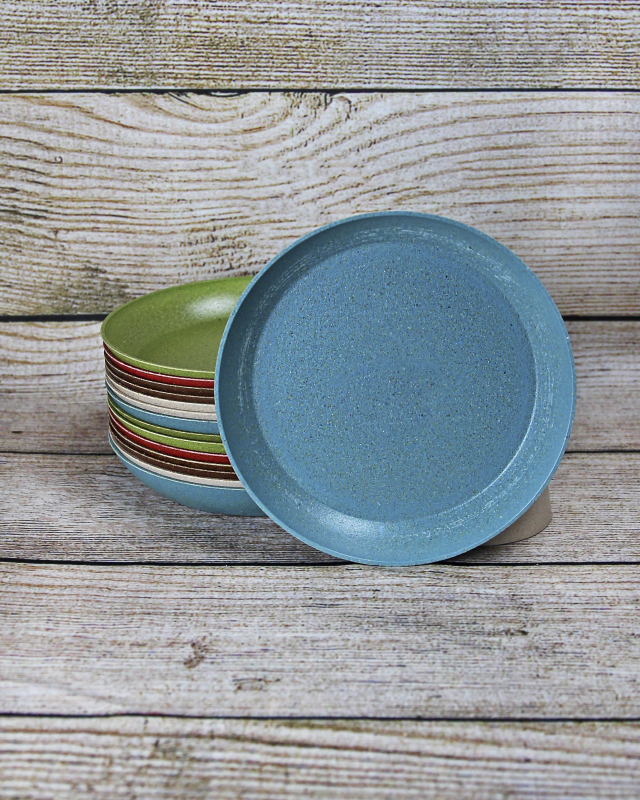 Biodegradable saucer made with rice hulls and natural binding agents.