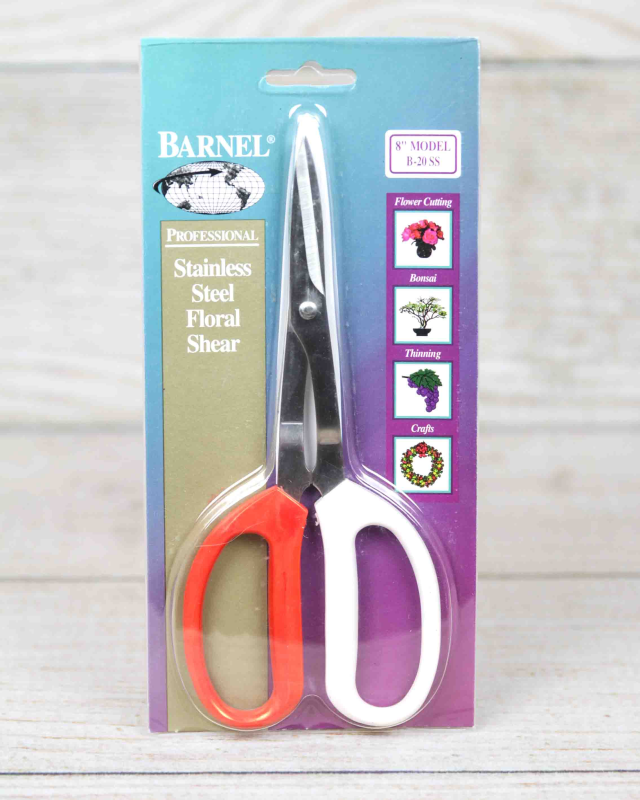 The professional eight-inch floral shears feature cushioned grips, which assure less fatigue with prolonged use. The stainless steel ensures sharp edges and long life that resists erosion. The shears are lightweight and have a nice, long reach.