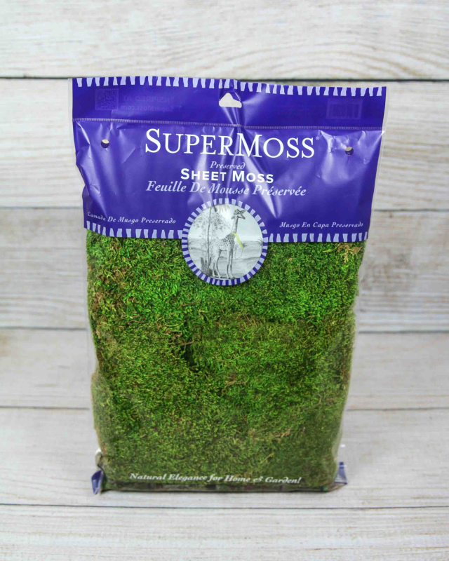SuperMoss Sheet Moss gives a fresh, natural look to any plant. This Sheet Moss is cleaned to remove any dirt or extraneous materials. It is soft and easy to use. Simply pull it apart according to your arrangement's needs and tuck it tightly around the base of the plant. Sheet Moss is a very classy finish to centerpieces and not only does it look great, it helps retain soil moisture for your plant's health.