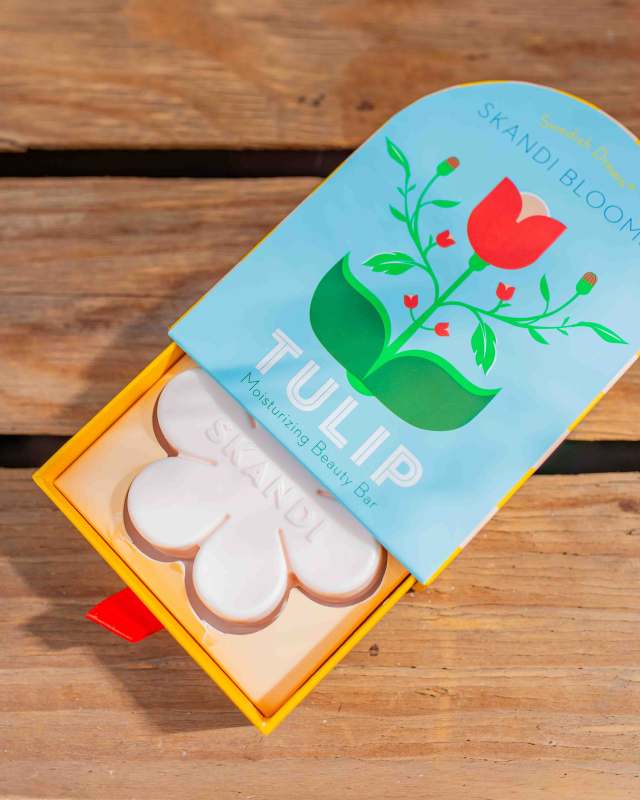 The magic of spring is finally here. Each Skandi Blooms Beauty Bar is formulated with skin-softening sunflower lecithin, helping you feel hydrated and clean. Tulips are a symbol of love and loyalty. One of the first flowers to bloom in spring, their colorful petals invite feelings of beauty and elegance as we bid farewell to winter. Breathe in the unmistakable scents of fresh-cut stems and crisp, clean greens bursting from a row of vibrant tulips in the garden.