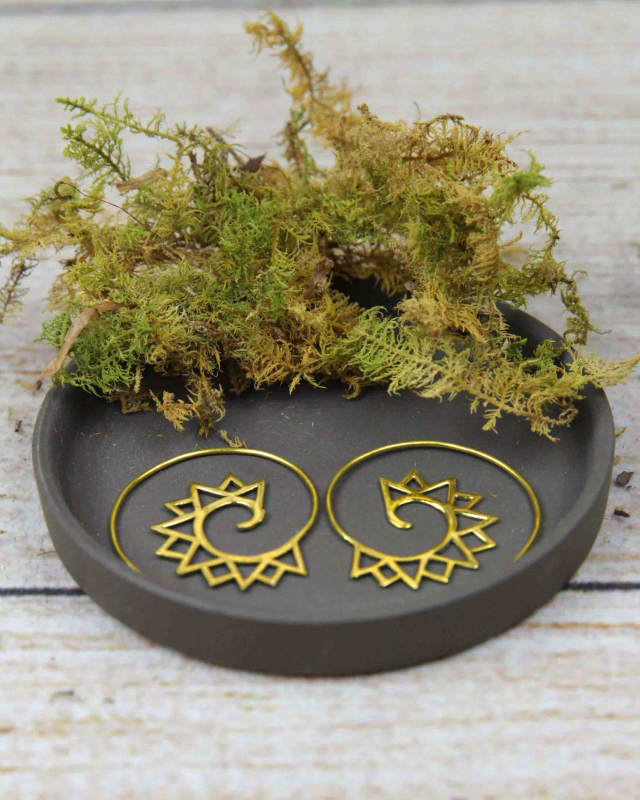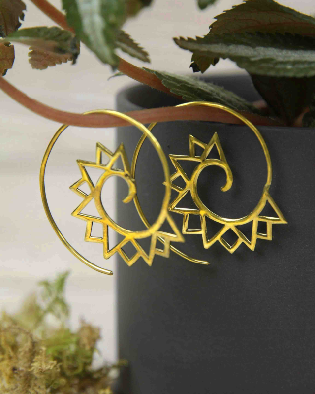 These captivating earrings are a true work of art, handcrafted from raw brass by skilled artisans at Baizaar. The design evokes the rugged beauty of mountain peaks, with spiraling ridges that capture the light and dance with every movement.