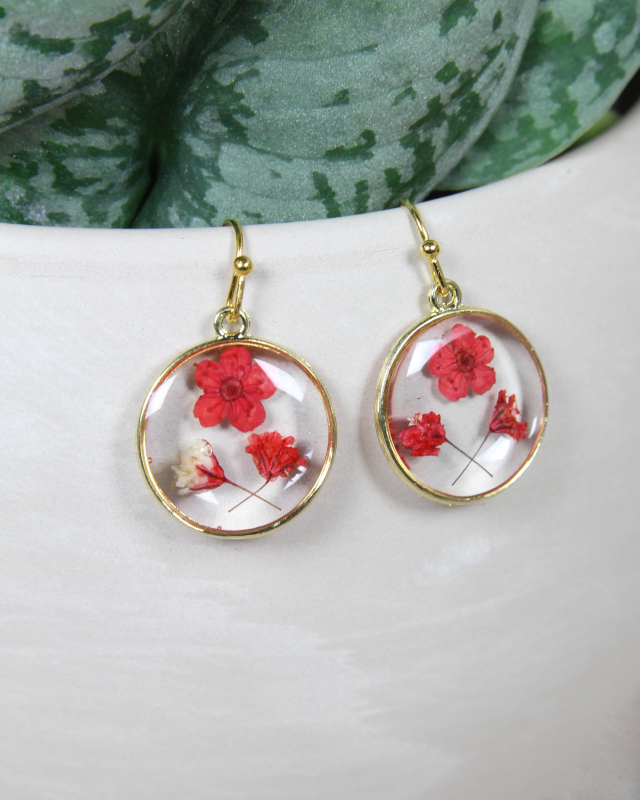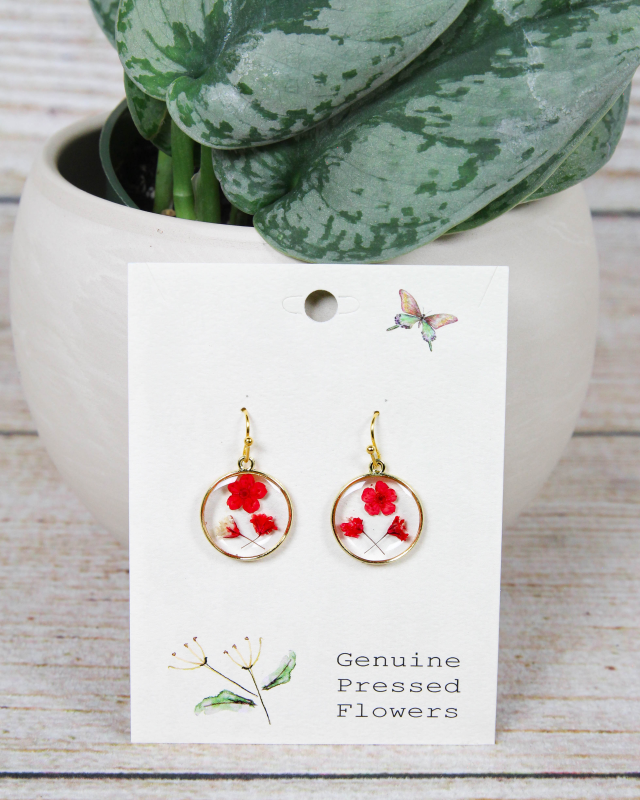 These small, dark pink, pressed flower earrings are a versatile accessory that can effortlessly enhance any outfit. Whether worn for a special occasion or as an everyday statement piece, these earrings exude a sense of refined beauty and sophistication. The dark pink pressed flowers exude a sense of femininity and grace, adding a subtle pop of color to your ensemble. Each flower is meticulously chosen for its vibrant hue and carefully pressed to preserve its intricate details. Encased within the resin, the flowers maintain their delicate form and texture, creating a captivating visual display.