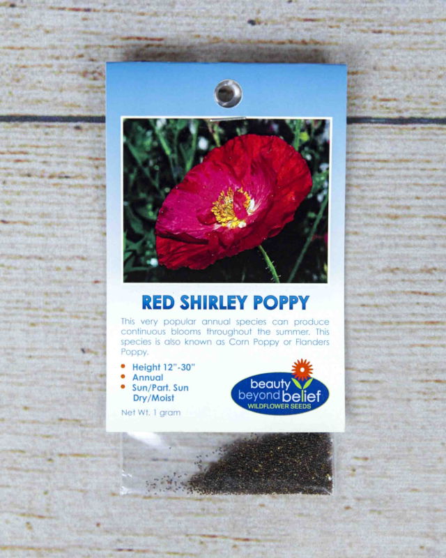 This delightfully colorful species derived from the European, wild, Flander’s Poppy is easy to grow and will thrive in most areas of the country. These will brighten any wildflower meadow and can make excellent cut flowers if the cut stems are first singed. These specially selected red blooms have single and double-petal forms with compact basil foliage.