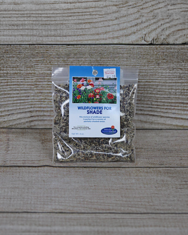 This mix of partial-shade tolerant annual, perennial, native, and introduced wildflowers is selected to grow well in many geographical areas. Many of these species prefer cooler partial shady areas, however many are fairly drought tolerant. Suitable for zones 2-8.