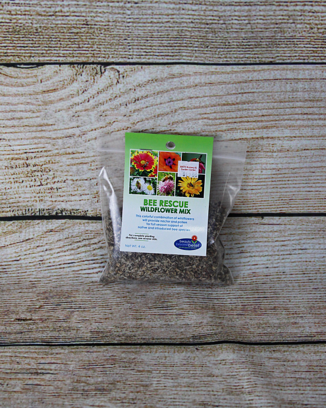 This includes a colorful combination of wildflowers that will provide nectar and pollen for full-season support of native and introduced bee species. Our “Bee Rescue Mix” has been designed to include the absolute best species to support the health and vitality for a wide range of native pollinators as well as the honey bee. These flowers attract the most pollinators and will do well over the most growing zones. Suitable for zones 2-9.