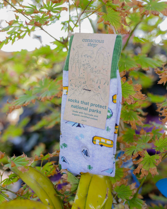 The Conscious Step "Socks that Protect National Parks" are a collection of thoughtfully designed and ethically produced socks that directly support the preservation of U.S. National Parks. A portion of the proceeds from every pair sold is donated to the National Parks Conservation Association (NPCA). This organization works to celebrate, protect, and preserve America's most iconic and inspirational natural places for present and future generations.