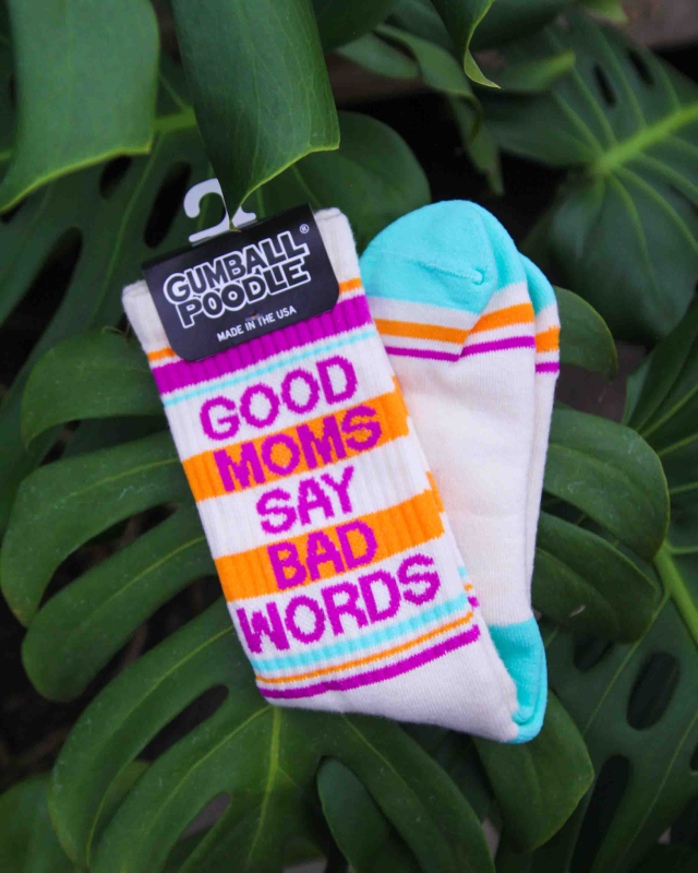 Socks for the matriarch in your life who is doing a really f**king good job. 💕 These super-comfy, unisex, one-size-fits-most, are made in the USA of Natural Cotton with accents of Lucite Green Nylon, Lt. Orange Nylon, Libby Berry Nylon.