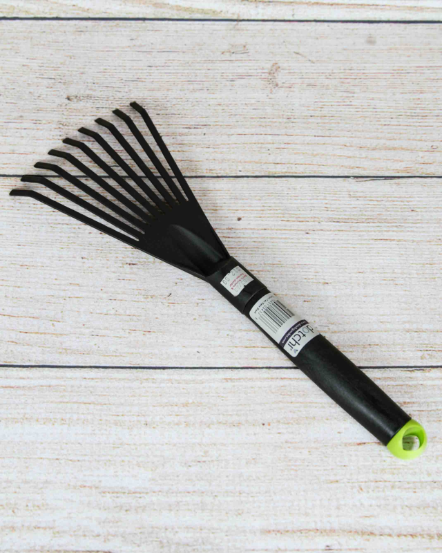 The Dotchi Fan Rake is a lightweight and ergonomic fan rake designed for durability and ease of use. It features a fan-shaped head with curved tines that are perfect for raking up leaves, grass clippings, and other debris. The tines are also spaced closely together to prevent smaller debris from falling through.