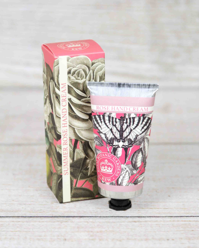 Nourish hard-working hands with this Kew Gardens Summer Rose Hand Cream, a sumptuous cream with ingredients to keep your skin feeling soft and pampered. This indulgent Summer Rose Hand Cream is fragranced with leading notes of beautiful roses and freshly cut grass. A floral heart of petals, peony and violet, on a base of Guaiacwood, raspberry and honey that adds richness and sweetness to the scent.