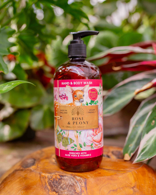 Rose & Peony has notes of rose and blackberry leaves, leading into a floral heart of peony, freesia, and raspberry. The base notes of white cedar, violet, heliotrope, and musk add richness and sweetness to the scent. This vegan-friendly hand wash produces a silky lather that scents and nourishes your skin.