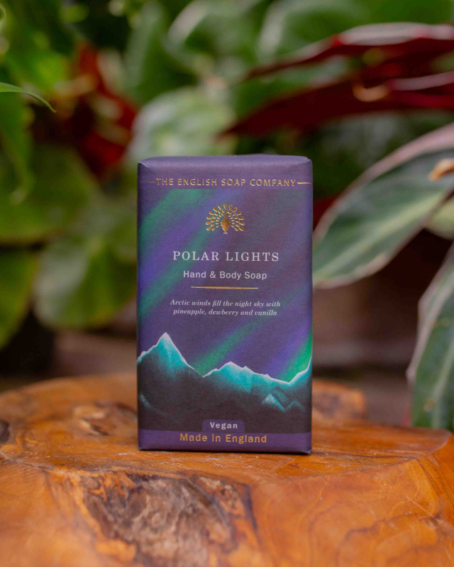 The Wintertide Polar Lights Hand and Body Wash has top notes of zesty lemon, mandarin and pineapple. The heart is made up of passionfruit, dewberry and spicy cumin, leading to a rich base of patchouli, vanilla, toffee and musks. Each bottle is decorated with painted illustrations of glistening Northern lights, dancing above icy glaciers in the clear night sky. Perfect for admirers of winter travel and uplifting fragrance. Vegan-friendly and enriched with shea butter!