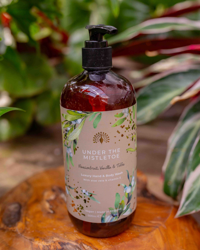 Experience luxury self-care with this Christmas Tidings Under the Mistletoe Hand and Body Wash. Beautifully fragranced and expertly crafted from high quality ingredients, enriched with aloe vera and vitamin E. Under the Mistletoe opens with top notes of zesty lemon, mandarin, and pineapple. The heart is composed of passionfruit, dewberry, and spicy cumin, leading to a rich base of patchouli, vanilla, toffee, and musk.