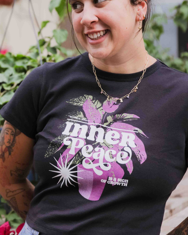 The Inner Peace Tee by Girl Dangerous is a women's graphic t-shirt designed to promote positive self-expression. It features a comfortable, cropped fit, and is made from soft cotton.