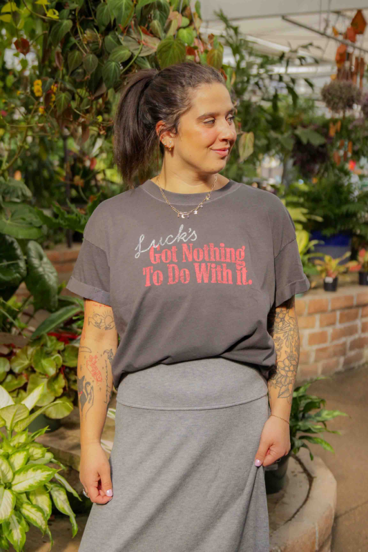 The Girl Dangerous Luck Tee makes a bold statement with the phrase "Luck's Got Nothing to Do with It" emblazoned across the front. It's a confident, rebellious mantra for the girl who takes control and makes her own breaks. Style it up or dress it down, this shirt is your reminder that you are dangerous and fully in charge of your destiny.