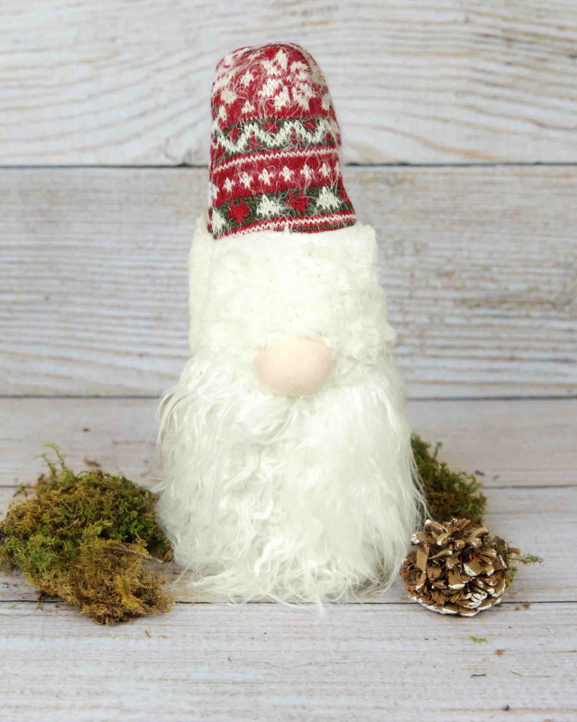 This adorable gnome figurine features a cozy, knit hat sitting over his eyes and a large, white fuzzy beard. Perfect for sitting on a shelf, mantel, or table, this gnome is sure to add a festive touch to any room!