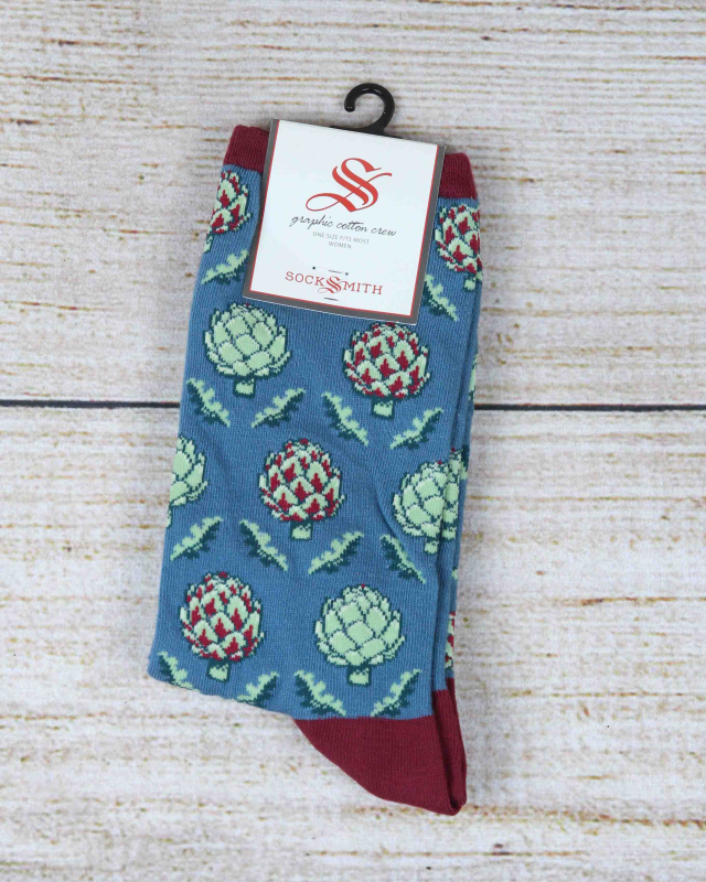 The Okie Dokie Artichokie Women's Socks from Socksmith are designed with a whimsical and food-inspired theme. The standout feature is, of course, the artichoke. These socks are adorned with adorable artichoke illustrations, showcasing the vegetable in various fun and imaginative ways. These socks are a delightful feast for the eyes!