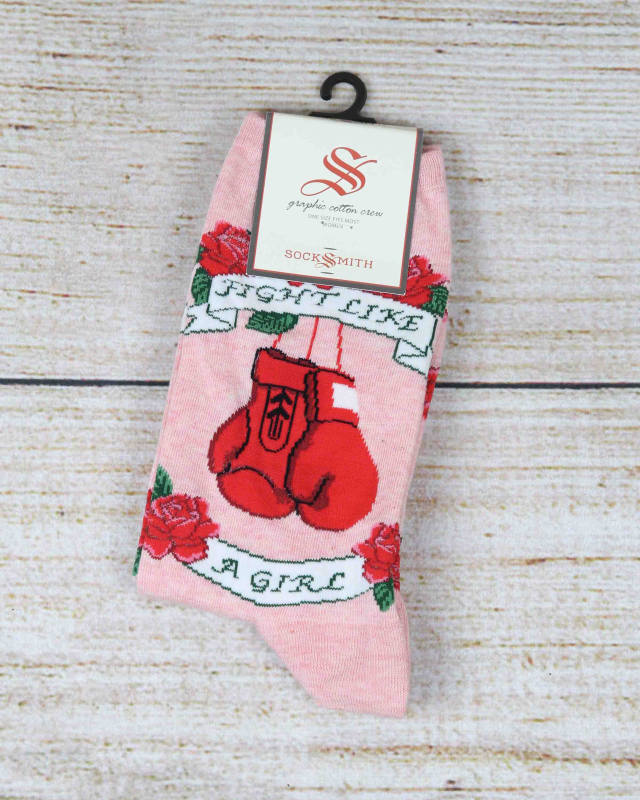 The Fight Like a Girl Women's Socks from Socksmith features a striking and symbolic design. The socks are adorned with red boxing gloves and roses. The most distinctive feature of these socks is the empowering message they convey. "Fight Like a Girl" is a rallying cry for women to embrace their power and inner strength. They are a thoughtful present for friends, family members, or colleagues who are unapologetically themselves and fight for what they believe in.
