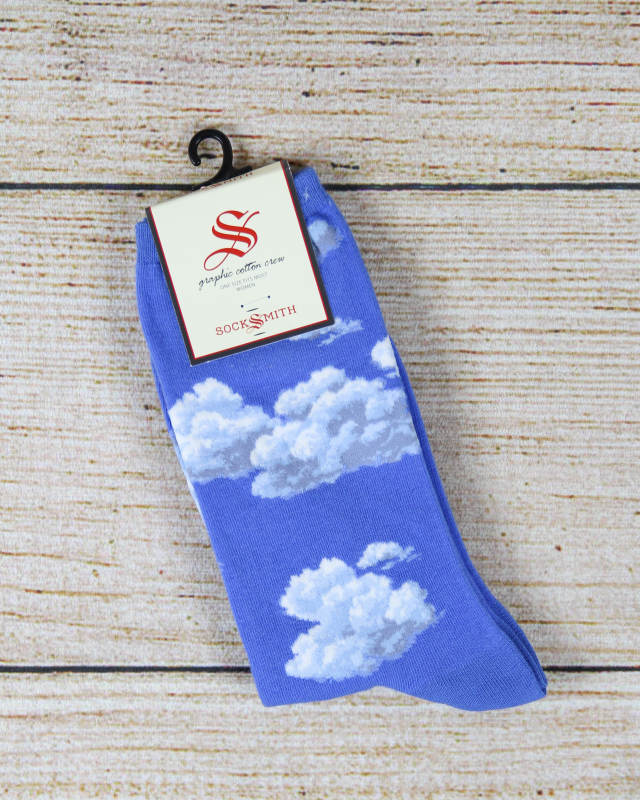 Embrace a touch of whimsy with Socksmith's Slightly Cloudy Women's Socks. These crew-length socks feature a light blue sky dotted with fluffy white clouds, a design that evokes a sense of serenity and relaxation.