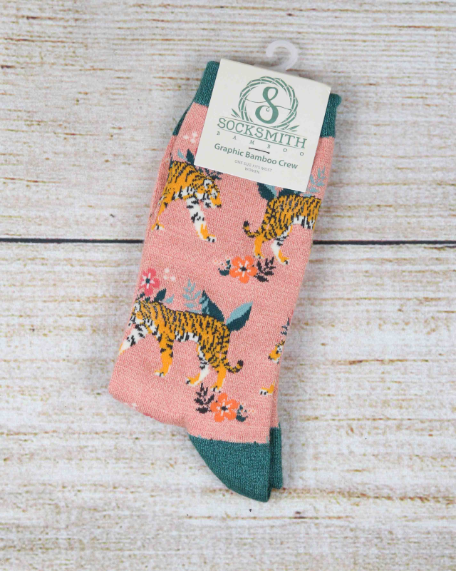 The Tiger Floral Pink Graphic Socks from Socksmith boast a visually stunning design that combines the fierce elegance of a tiger with the delicate beauty of florals. These socks not only feature a striking design but are also made from bamboo, an eco-friendly and soft material. Bamboo is known for its softness, moisture-wicking properties, and breathability, making these socks not only stylish but also exceptionally comfortable.