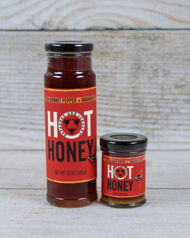 Savannah Bee Hot Honey is a sweet and spicy honey infused with scotch bonnet and habanero peppers. It has a unique flavor profile that is both sweet and savory, with a hint of heat. Savannah Bee Hot Honey can be used in a variety of ways, including drizzling it on pizza, fried chicken, or ice cream, adding it to cocktails, or using it as a marinade. It is also a great way to add a bit of spice to everyday dishes, such as oatmeal, yogurt, or pancakes. Bee Creative!