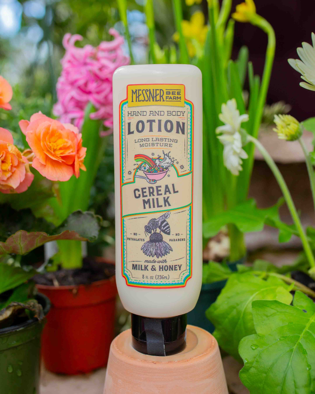 Nostalgia in a bottle! Cereal Milk honey lotion is the bee’s knees! Our lightweight, moisturizing lotion is packed with natural ingredients. Honey and bee propolis to protect; while goat's milk, olive oil, jojoba oil, and shea butter nourish and hydrate.