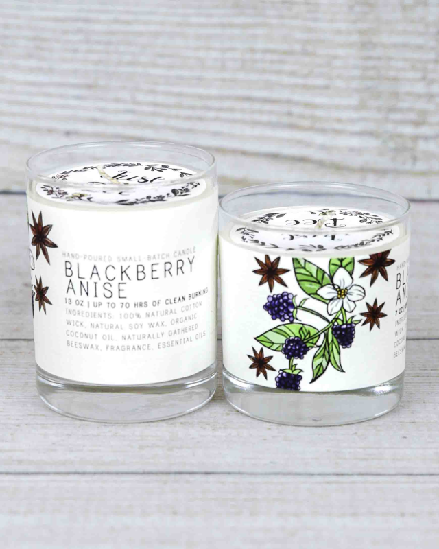The Blackberry Anise Just Bee candle offers an enchanting fusion of nature and exotic aromas. It combines the juicy, fruity burst of succulent smashed ripe blackberries with the intriguing licorice-like aroma of anise seed and the opulent, luxurious presence of saffron. Made with 100% natural ingredients, including a cotton wick, soy wax, organic coconut oil, and beeswax, this candle provides a clean and long-lasting burn.